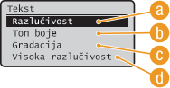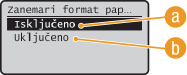 <Standard.format papira> i <Standardni tip papira> nije moguće zasebno definirati. Na zaslonu <<Standard.format papira>> definirajte format papira, a zatim na zaslonu <<Standardni tip papira>> i vrstu papira.
