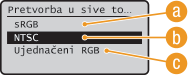 Odaberite <sRGB>, <NTSC> ili <Ujednačeni RGB>