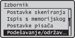 Na popisu se nalaze sve postavke vezane uz prilagođavanje i održavanje s kratkim opisima. Zadane su postavke označene bodežom (
