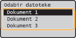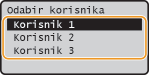 Ako se u memoriji nalaze zaštićeni dokumenti dvaju ili više korisnika, zaslon <Odabir korisnika> će se prikazati prije zaslona <Odabir datoteke>. Pomoću tipki