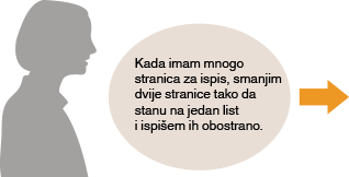 U upravljačkom programu pisača podesite ispisivanje uz uštedu tonera kao postavku. Od sad možete dokumente ispisivati s manje tonera bez potrebe da svaki put mijenjate postavku. Promjena zadanih postavki ispisivanja