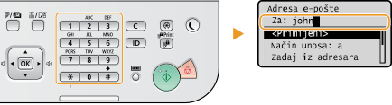 Numeričke tipke možete koristiti samo pri definiranju prvog odredišta. Ako želite definirati dodatna odredišta, učinite to pomoću adresara ili LDAP poslužitelja. Da biste definirali odredišta u kopiji ili skrivenoj kopiji, morate se poslužiti adresarom.