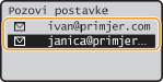 Kao odredište možete odabrati jedno od tri prethodno korištenih odredišta. Kada definirate prethodno korišteno odredište, uređaj postavlja iste postavke skeniranja (na primjer gustoću) koje ste koristili pri zadnjem slanju dokumenata na to odredište.