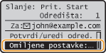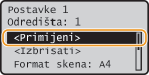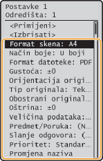 <Omiljene postavke> <Uredi/izbriši> odaberite postavku uredite postavku <Primijeni> Da . Ne možete promijeniti odredišta registrirana u postavci pomoću ovog postupka. Registrirajte novu postavku sa željenim odredištima.Ako želite izbrisati registriranu postavku, pritisnite