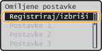 <Omiljene postavke> <Uredi/izbriši> odaberite postavku Izbriši Da .Registrirane postavke ostaju spremljene čak i nakon isključivanja uređaja.