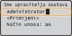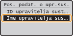 Unesite najviše 32 znaka za ime upravitelja sustava, odaberite <Primijeni> i pritisnite