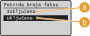 Prikaz zaslona za potvrdu broja faksa (samo imageRUNNER 1435iF)