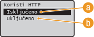 HTTP se koristi za komunikaciju putem mreže, primjerice prilikom pristupanja uređaju putem sučelja Remote UI (korisničko sučelje za daljinski pristup). Ako koristite USB vezu ili inače ne koristite HTTP, možete ga onemogućiti da biste blokirali zlonamjerne upade trećih osoba putem nekorištenog HTTP priključka.