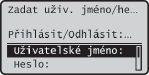 Tato přihlašovací obrazovka se zobrazí, když je aktivována funkce Oprávněné odesílání, tj. bezpečnostní funkce pro odesílání dokumentů.