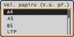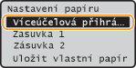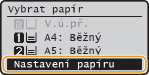 Jakmile je výchozí nastavení papíru uloženo, přestane se po vložení papíru zobrazovat obrazovka nastavení papíru a zařízení použije vždy toto nastavení. Pokud do zařízení vložíte jinou velikost nebo typ papíru a nezměníte nastavení papíru, nemusí zařízení tisknout správně. Chcete-li tomuto problému předejít, deaktivujte výchozí nastavení výběrem <Vypnuto> v kroku 3 a poté uložte papír.