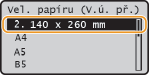 Vyberte uloženou velikost, kterou chcete odstranit, a stiskněte tlačítko
