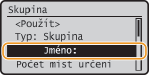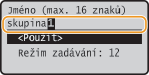 Zadejte název skupiny pomocí číselných tlačítek, vyberte <Použít> a stiskněte