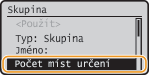 Vyberte <Počet míst určení> a stiskněte