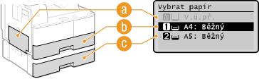 Nejprve je třeba určit velikost a typ papíru vloženého ve zdroji papíru.