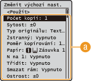 Vyberte položku, kterou chcete nastavit, a změňte výchozí hodnotu.