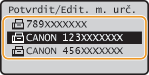 .Jestliže jste v kroku 2 zadali skupinové místo určení, na obrazovce se zobrazí <Počet míst určení>. Vyberete-li tuto položku a stisknete