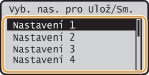<Oblíbená nastavení> <Uložit/Odstranit> vyberte nastavení <Smazat> <Ano> .Uložená nastavení jsou uložena, i když dojde k vypnutí zařízení.