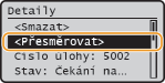 Z adresáře vyberte místo určení pro přesměrování a stiskněte tlačítko