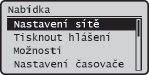 Všechna nastavení týkající se sítě jsou uvedena s krátkým popisem. Výchozí nastavení jsou označena křížkem (