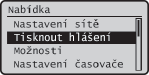 Všechna nastavení týkající se hlášení jsou uvedena s krátkým popisem. Výchozí nastavení jsou označena křížkem (  ).