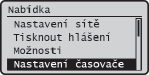Všechna nastavení týkající se časovače jsou uvedena s krátkým popisem. Výchozí nastavení jsou označena křížkem (