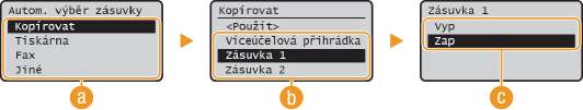 ). Automatický výběr zásuvek je vždy zapnutý pro tisk na papír podávaný z víceúčelové přihrádky.
