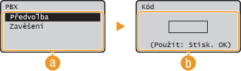 Zadejte přístupové číslo na vnější linku, pokud vyberete <Předvolba>