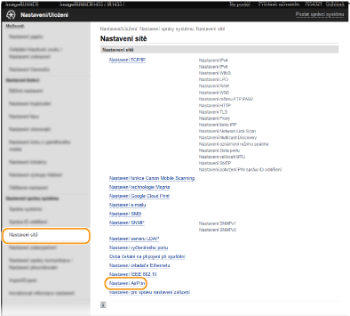 Pokud chcete zakázat funkce, které nebudete používat se službou AirPrint nebo šifrovat komunikaci, nakonfigurujte nezbytné nastavení pomocí ovládacího panelu.