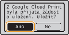 Zařízení lze také zaregistrovat z mobilního zařízení nebo aplikace Google Chrome*. Před dokončením registrace se na displeji zařízení objeví obrazovka s potvrzením. Stisknutím <Ano> registraci dokončete.