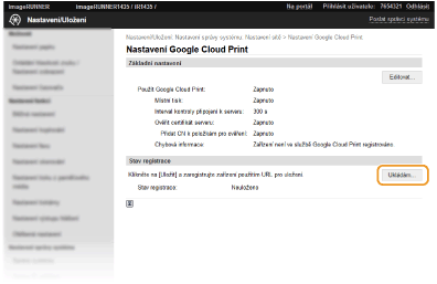 Je třeba povolit službu Google Cloud Print. Klikněte na [Editovat...], zaškrtněte políčko [Použít Google Cloud Print] a pak klikněte na [OK].