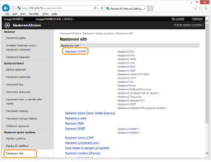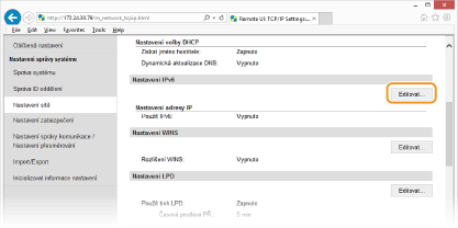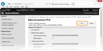 Kontrola správnosti nastaveníZkontrolujte, zda lze pomocí počítače zobrazit Vzdálené uživatelské rozhraní tak, že zadáte adresu IPv6 zařízení. Spuštění vzdáleného uživatelského rozhraní
