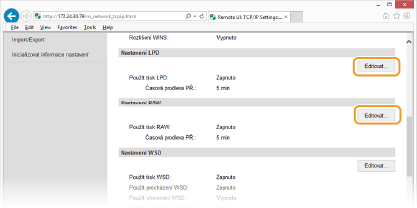 Políčko zaškrtněte, chcete-li tisknout pomocí protokolu LPD. Pokud tisk LPD nepoužíváte, zaškrtnutí políčka zrušte. [Použít tisk RAW]