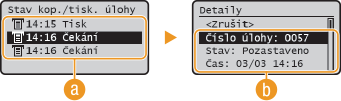 .![]() <Stav kop./tisk. úlohy>Zobrazí seznam dokumentů, které se zpracovávají, kopírují nebo čekají na zpracování.