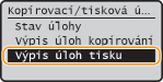 Vyberte <Výpis úloh tisku> a stiskněte