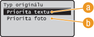 vyberte <Priorita foto> nebo <Priorita textu> a stiskněte