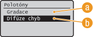 vyberte <Gradace> nebo <Difúze chyb> a stiskněte