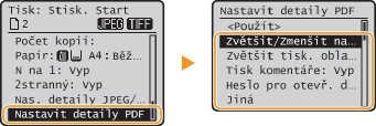 Zadání nastavení tisku pouze pro soubory JPEG/TIFF