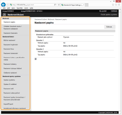 Nastavení pod [Nastavení správy systému] můžete měnit pouze v případě, že jste přihlášeni v režimu správce systému.