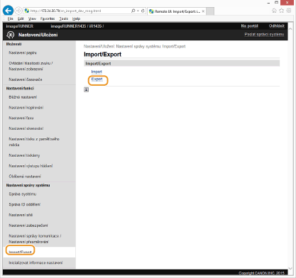 V průběhu procesu exportu zůstane zobrazena stejná obrazovka nebo se zobrazí hlášení s oznámením , že probíhá export. Ve vzdáleném uživatelském rozhraní neprovádějte žádné operace, dokud se nezobrazí hlášení s výzvou, abyste uložili exportovaný soubor.