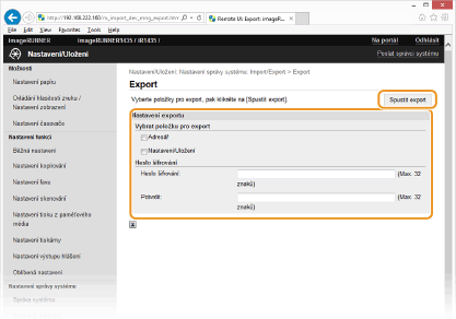 Zadejte nastavení pro export a klikněte na [Spustit export].
