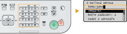 Při zadávání prvního místa určení lze použít číselná tlačítka. Pokud chcete zadat další místa určení, použijte adresář nebo server LDAP. Chcete-li místa určení zadat jako adresy Cc (kopie) či Bcc (skrytá kopie), je třeba použít adresář.