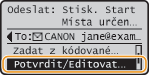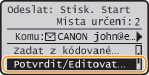 Vyberte <Potvrdit/Editovat místo určení> a stiskněte