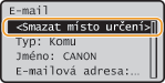 . Chcete-li zrušit zadané místo určení, vyberte <Zrušit>, stiskněte