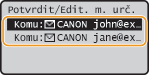 můžete také vybrat <Zadat z adresáře> na obrazovce a stisknout