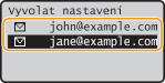 Jestliže vypnete zařízení nebo nastavíte volbu <Omezit nová místa určení> na <Zapnuto>, dojde k odstranění naposledy použitých míst určení a nebudete je moci znovu vyvolat. Omezení dostupných míst určení