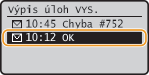 Když je <Zobrazit výpis úloh> nastaveno na <Vypnuto>, nelze kontrolovat výpisy odeslaných dokumentů.