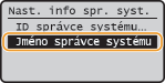 Pokud se pokusíte o přístup k volbám <Nastavení sítě> nebo <Nastavení správy systému>, když je aktivována pouze funkce ID správce systému, zobrazí se následující přihlašovací obrazovka: