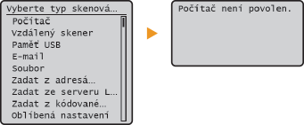Zaškrtnete-li políčko [Skenovat], je zakázáno skenování dokumentů na paměťová zařízení USB, do e-mailů a na souborové servery. Skenování dokumentů do počítačů můžete zakázat také prostřednictvím možností <Počítač> a <Vzdálený skener>. Skenování dokumentů do počítačů však můžete zakázat pouze pro všechna ID oddělení. (Blokování úloh, když je ID oddělení neznámé).