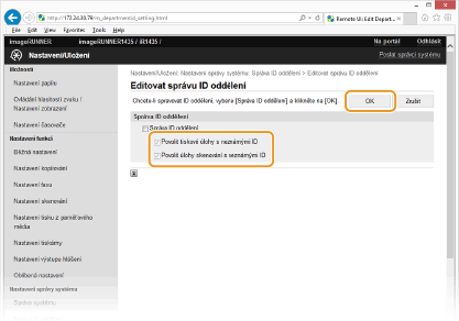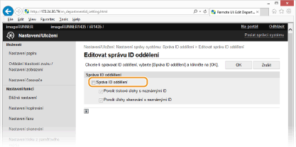 Zaškrtněte políčko [Použít správu ID oddělení] a klikněte na tlačítko [Nastavení] nacházející se vpravo vedle políčka.