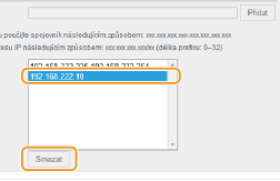 Smazání IP adresy ze seznamu výjimek Vyberte IP adresu a klikněte na [Smazat].